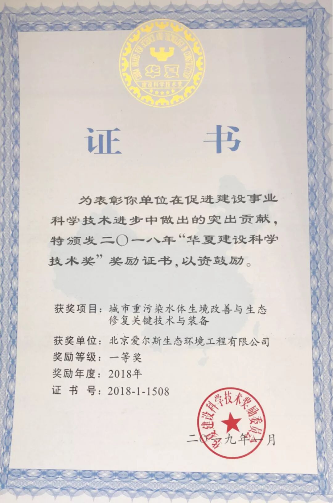 "华夏建设科学技术奖"是建设系统以社会力量办奖的形式设立的建设行业科学技术奖。设奖机构为中国建筑设计研究院,承办机构为住建部科技发展促进中心,决策机构为建设行业知名机构组成的评审委员会,住建部科技司对这一奖项进行扶持、规范、协调和指导,该奖项在建设行业业内具有很高的科技性与权威性。爱尔斯生态在本次参选的353个申报单位中脱颖而出,荣获一等奖!